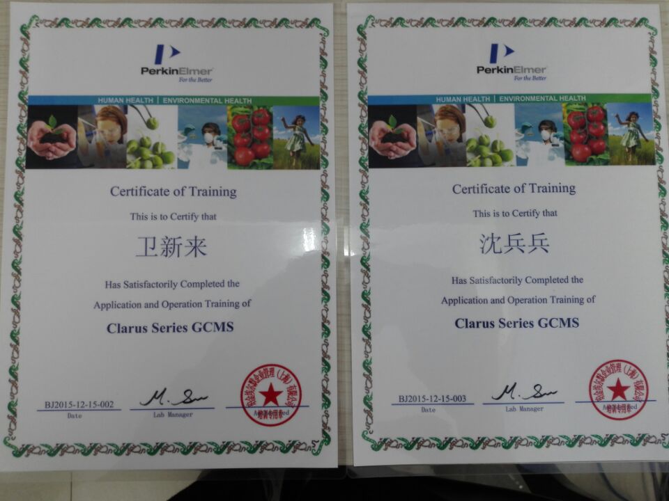 2015年12月13日至18日,公司组织员工到珀金埃尔默股份有限公司(北京分公司)参加关于GC/MS气质联用仪的培训,培训期间我公司员工认真学习理论知识和操作技能,并顺利通过考核,技术实力得到提升。